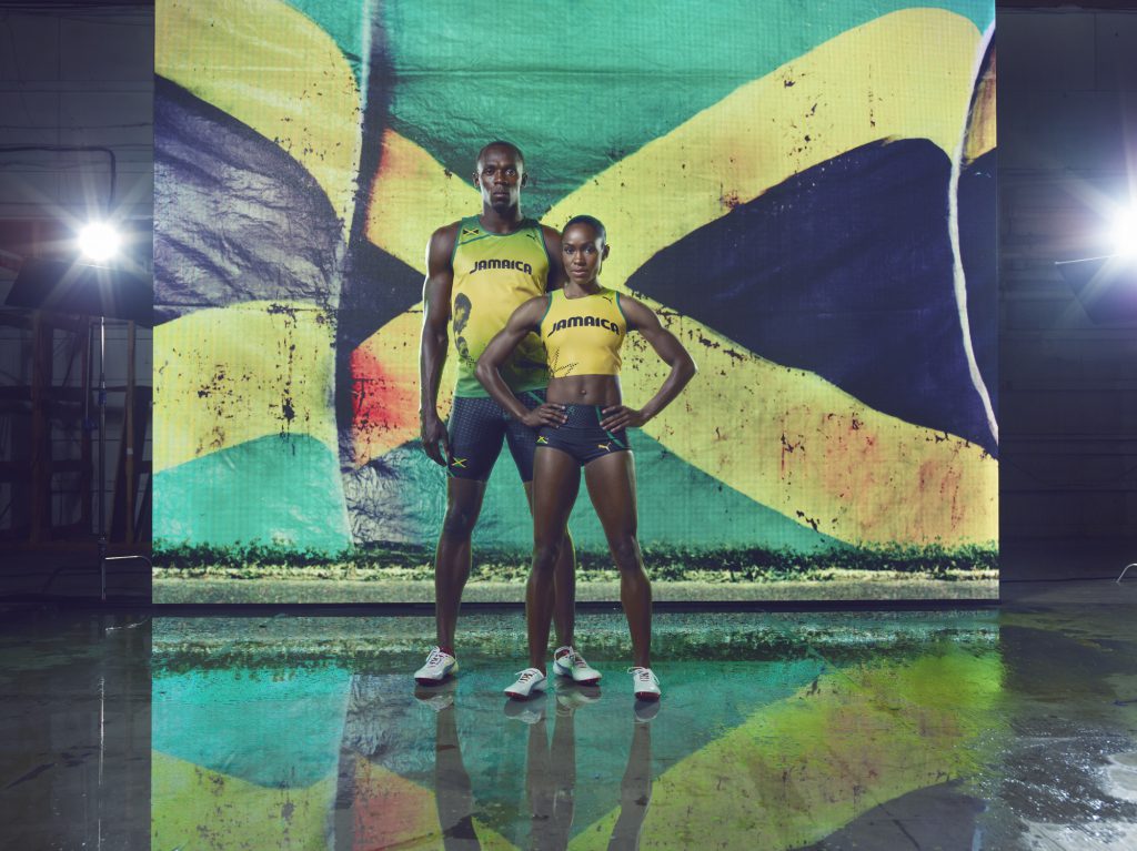 2011 Puma commissioned Harris Elliott Studio to devise a series of concepts to help promote and market the Jamaican team for London 2012. The consultancy results were so on point that they asked the studio to art direct and style for their global press campaign featuring Usain Bolt. The artist Barry Kamen Harris travelled to Jamaica to work closely with Cedella Marley (designer of the 2012 Olympic kit). The development of this project resulted in, Harris Elliott Studio collaborating with House of Flora to create 100 perspex visors for the Jamaican team for the Olympic Games opening ceremony and a series of unique merchandise items.